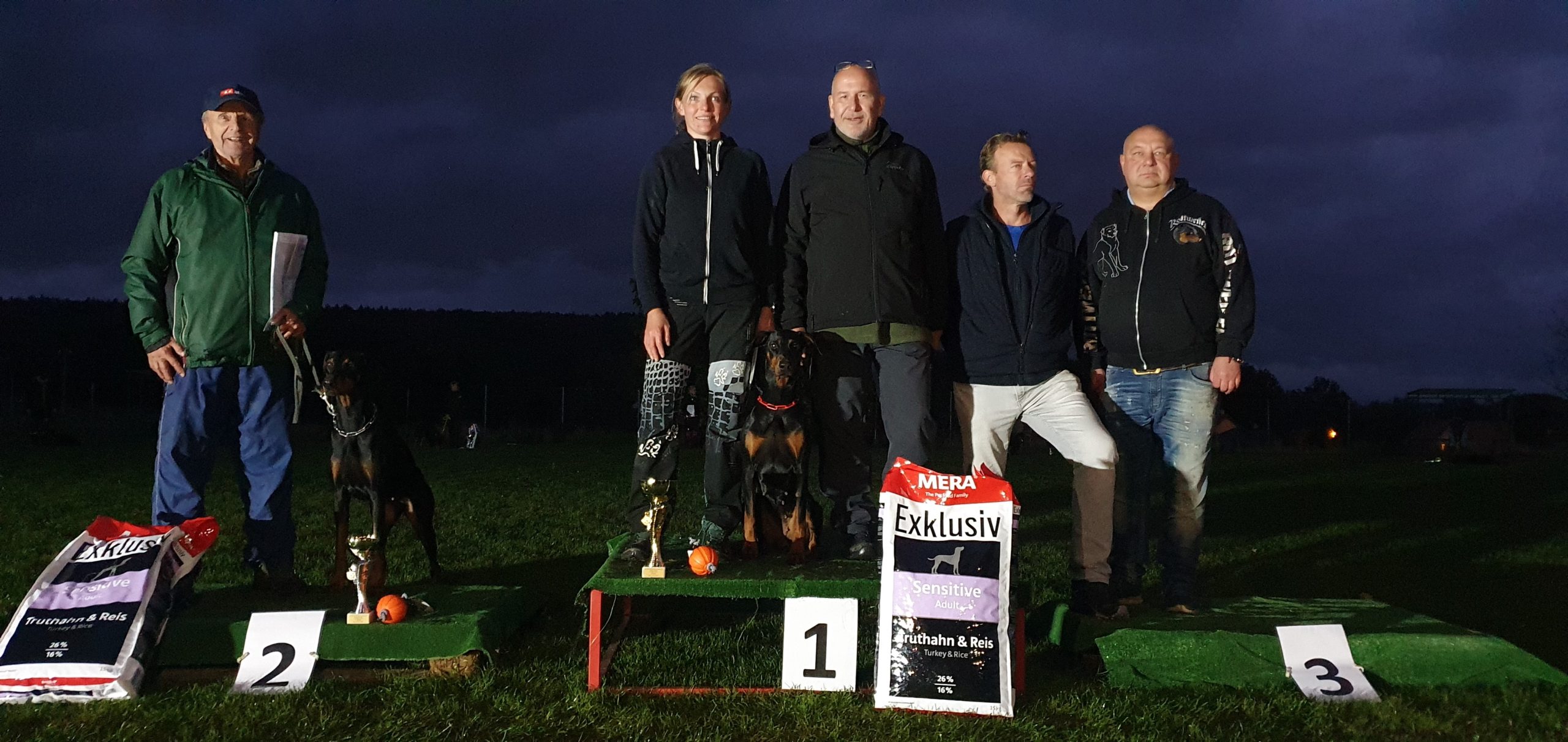 V kategorii IGP 1 na MR dobrmanů nastoupili letos 2 zástupci plemene dobrman. Anna Lachmanová a František Dočekal. Oba limit zkoušky splnili . Paní Lachmanová s fenou Fera Halit Paša zazářila velkým bodovým náskokem, jak před fenkou Nana Antis pana Dočekala, tak i rovněž před dalšími třemi RTW ,kteří soutěžili ve stejné kategorii. Fera Halit Paša v IGP1 měla nejlépe bodově ohodnocenou poslušnost 91b. i stopu 97 b. a umístila se na MR dobrmanů na nádherném 1.místě ! Krásný výsledek. Pan Dočekal se svojí fenkou Nana Antis se umístil na MR dobrmanů také na 2. místě . Vzhledem k věku pana Dočekala, který je aktivní stálicí dobrman klubu smekáme za jeho vystoupení, vitalitu a předvedení své fenky na tomto závodě. Člověk musí mít srdce pro plemeno, aby i v tomto úctyhodném věku prezentoval tak náročné plemeno jako je dobrman. Klobouk dolů .